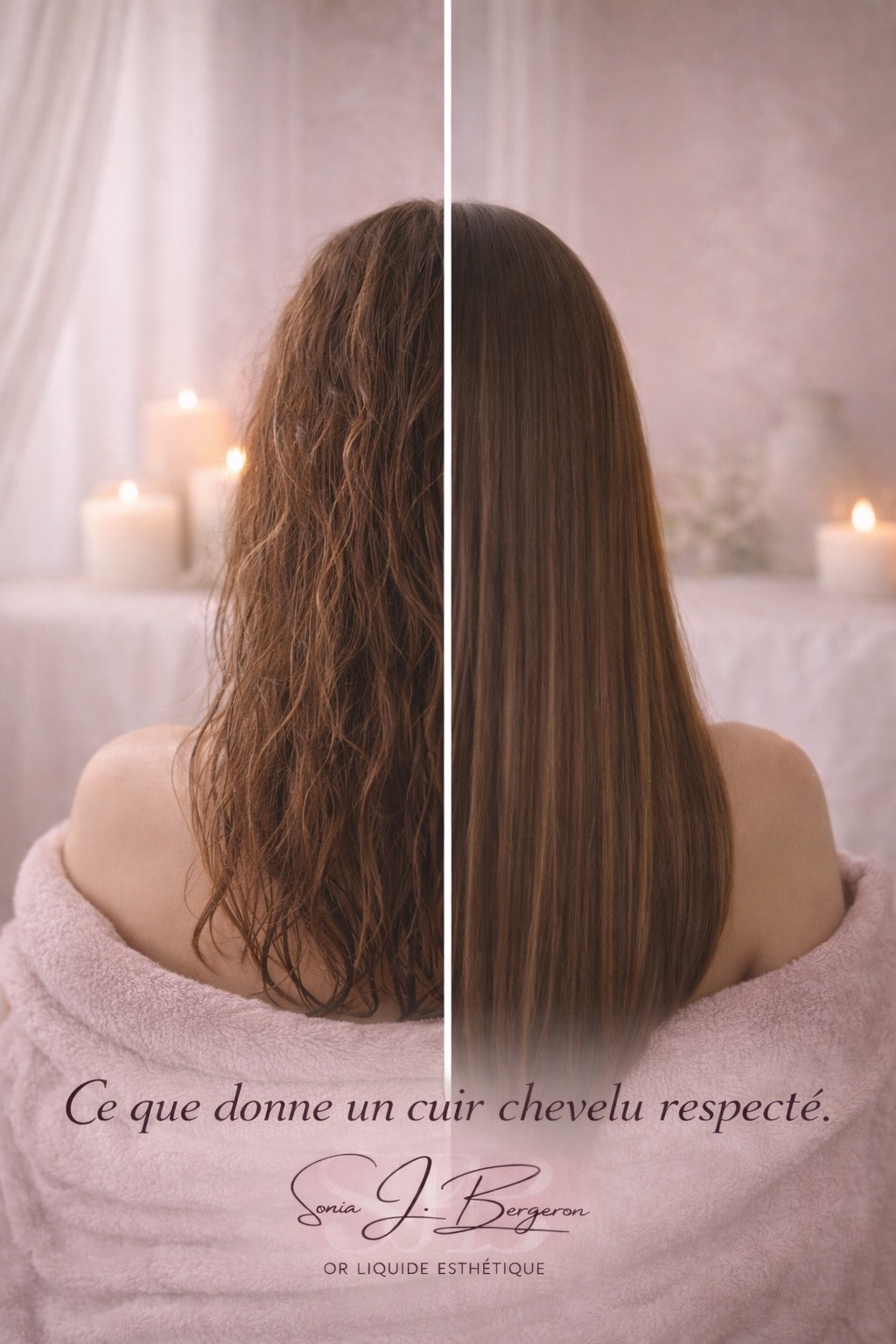 Le Head Spa Or Liquide est bien plus qu’un moment de détente.C’est un soin du cuir chevelu basé sur les principes de l’esthétique régénérative, conçu pour traiter le cuir chevelu comme une peau vivante, richement vascularisée et intimement liée à la santé du cheveu.